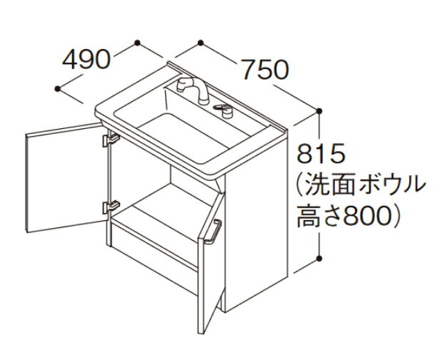 ●TOTO 洗面化粧台【LDPB075BAGEN2A】Vシリーズ 2枚扉 扉カラー:ホワイト 間口750mm 一般地〔JB〕