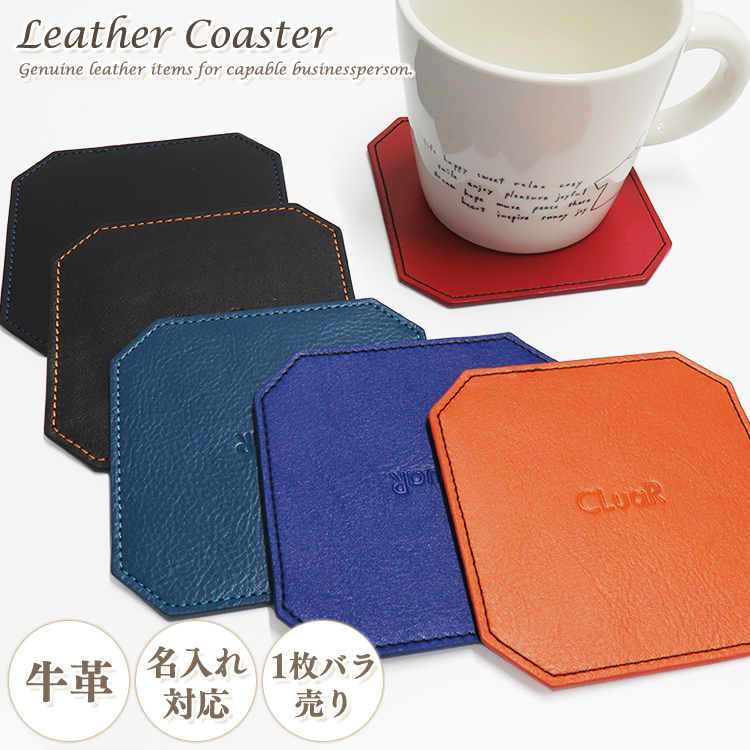 名入れ コースター レザー 牛革 1枚 バラ売り 大きめ 八角形 ラッピング