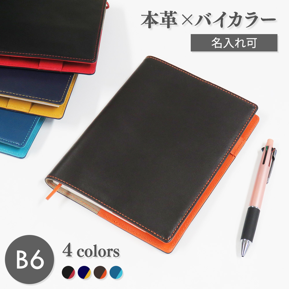 シンプルだけどバイカラーがおしゃれな、ビジネスシーンに映える牛革製ノートカバー「B6」。