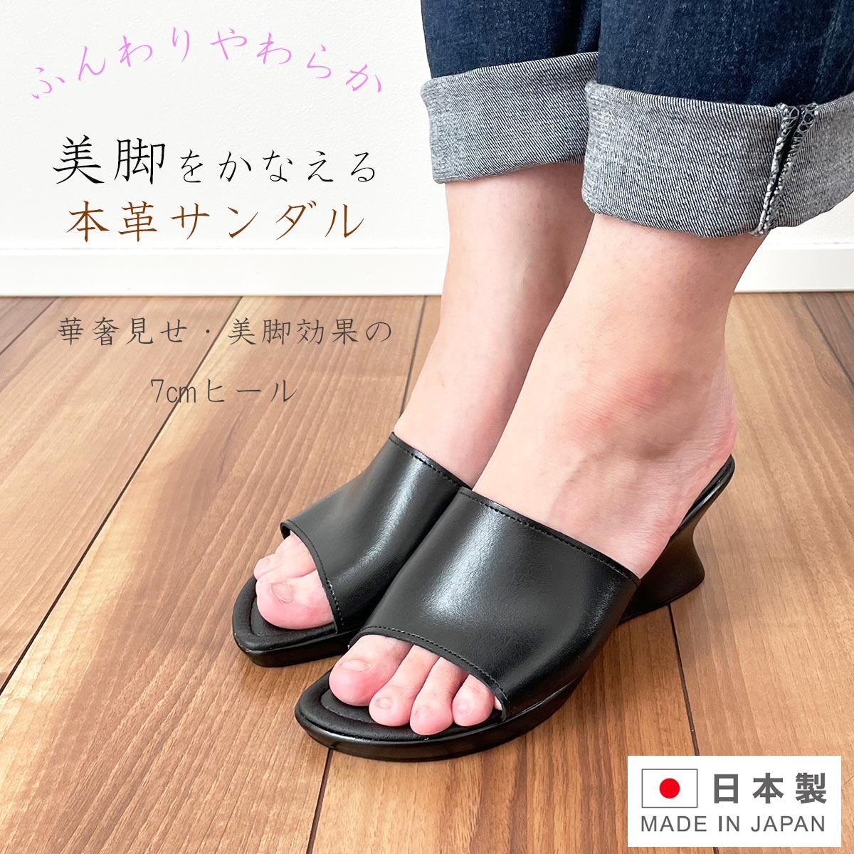 サンダル レディース オフィス 美脚 痛くない オフィスサンダル 靴 疲れない 履きやすい 黒 ブラック 7.5cm ヒール 軽い 事務 日本製 本革 Anna Nicola アンナニ