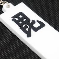 家紋を立体的な凸凹のある表現で配置し、色鮮やかなラバー(PVC)素材を用いてキーホルダーを作成しました。