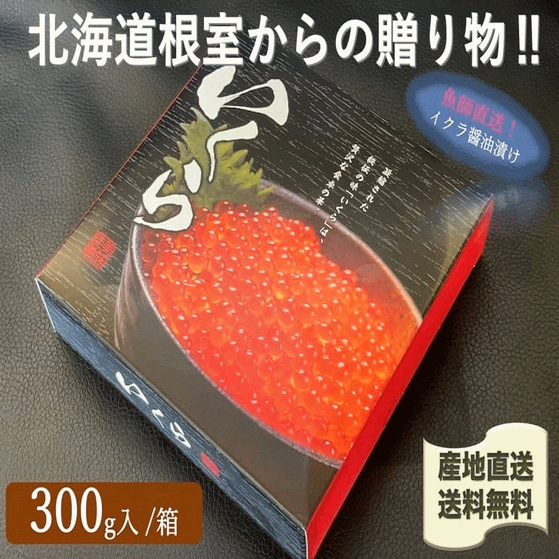 北海道根室産 漁師直送 本物の秋鮭イクラ醤油漬け300g/箱 化粧箱入れ 送料無料