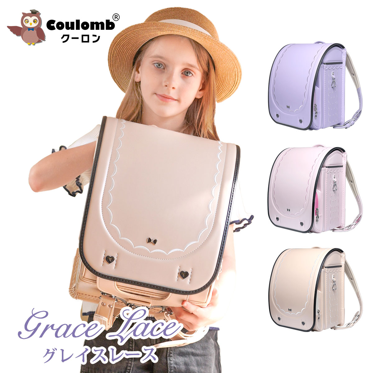0104[Coulomb] 2026年度クーロンランドセル女の子 最新グレイスレースモデル ツヤありパール生地 A4フラットファイル対応 軽量大容量ラパープル 小学校