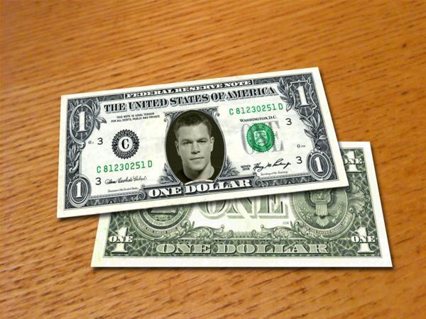 人気俳優!Matt Damon/マット・デイモン/本物米国公認1ドル紙幣-1