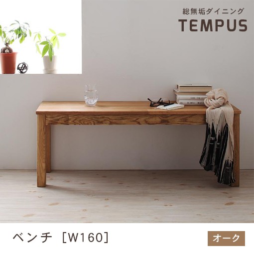 ベンチ W160cm カラー:オーク | W160 ダイニング 天然木 ベンチ 総無垢 オーク 無垢 ナチュラル 家具 椅子 イス 長椅子