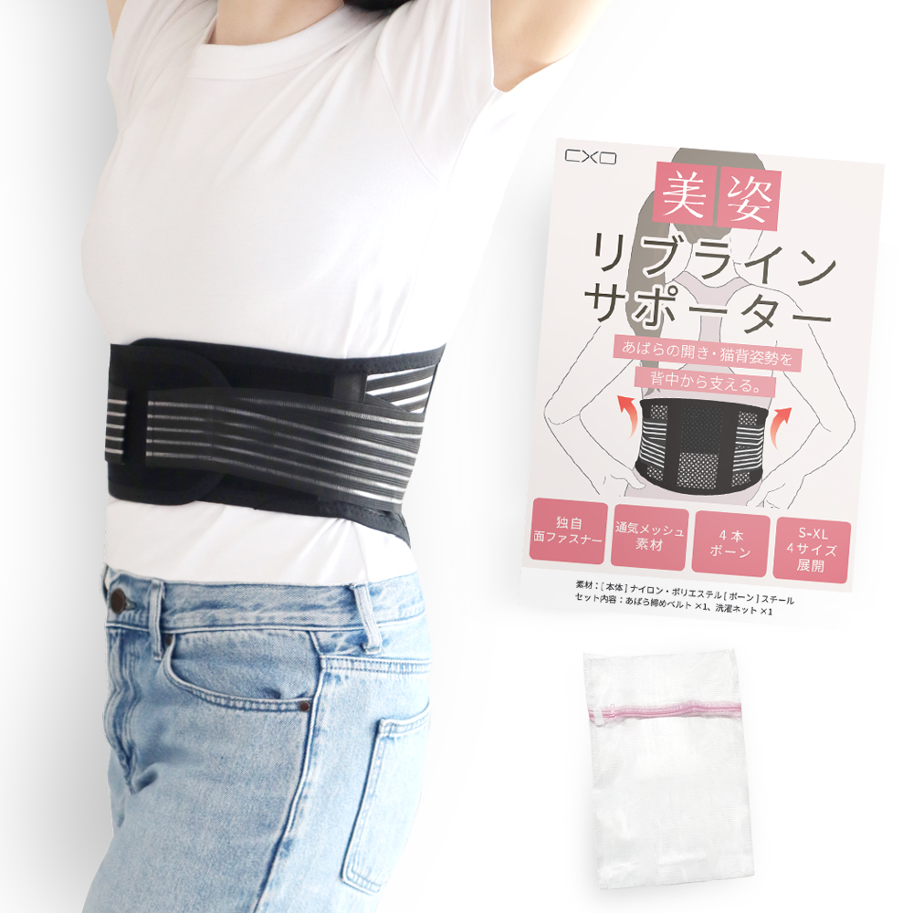 CxO 肋骨サポーター あばら締めベルト 姿勢補正 背中サポーター 薄手 通気性 くびれサポート レディース 目立ちにくい S M L XL 洗濯ネット付き