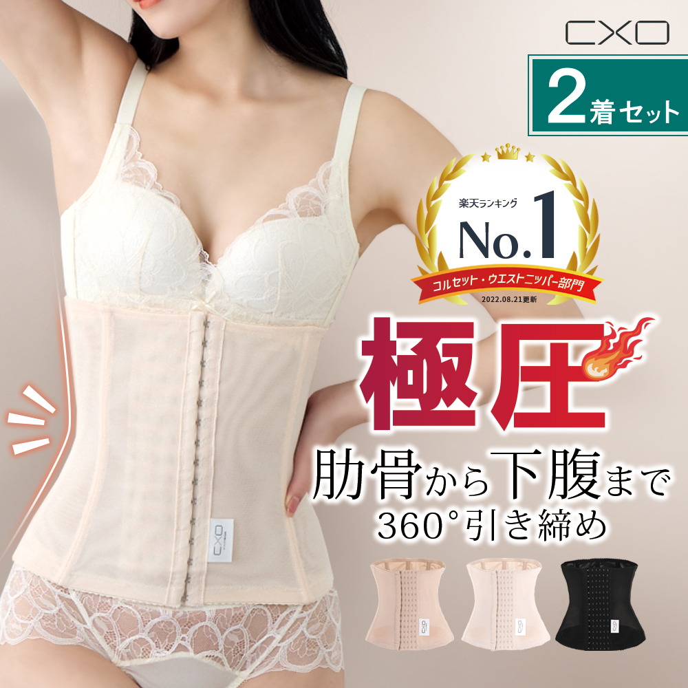 \お得な2枚セット/ (はみ肉ともおさらば) コルセット ウエストニッパー 補正下着 (ボーン 7本 ホック 6列) 姿勢 くびれ