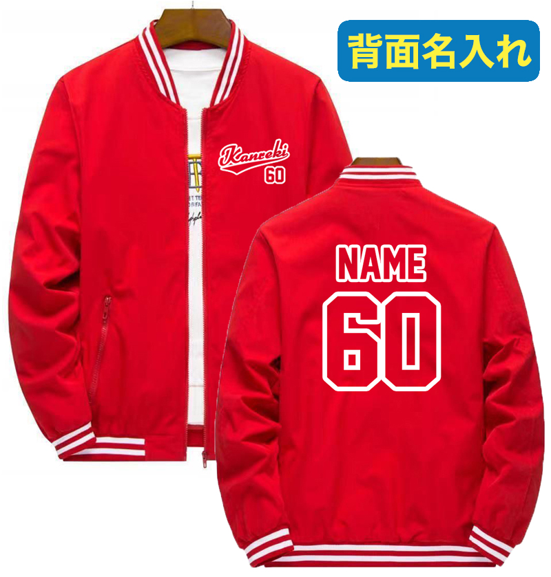 オリジナル 名入れ 還暦 ジャケット メンズ 男女兼用 パーカー スタジャン 薄手 作成 自作 還暦祝い 冬 防風 60歳 赤 母 父 ネーム入れ 名前入れ