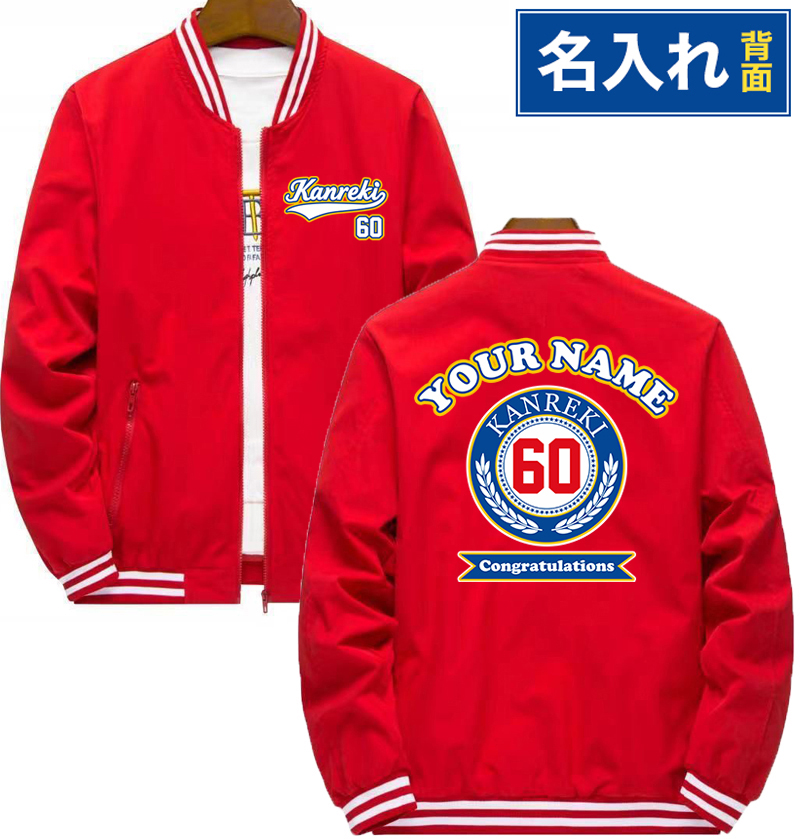 還暦 ジャケット 名入れ メンズ 男女兼用 パーカー スタジャン 薄手 作成 自作 還暦祝い 冬 防風 60歳 赤 母 父 ネーム入れ 名前入れ
