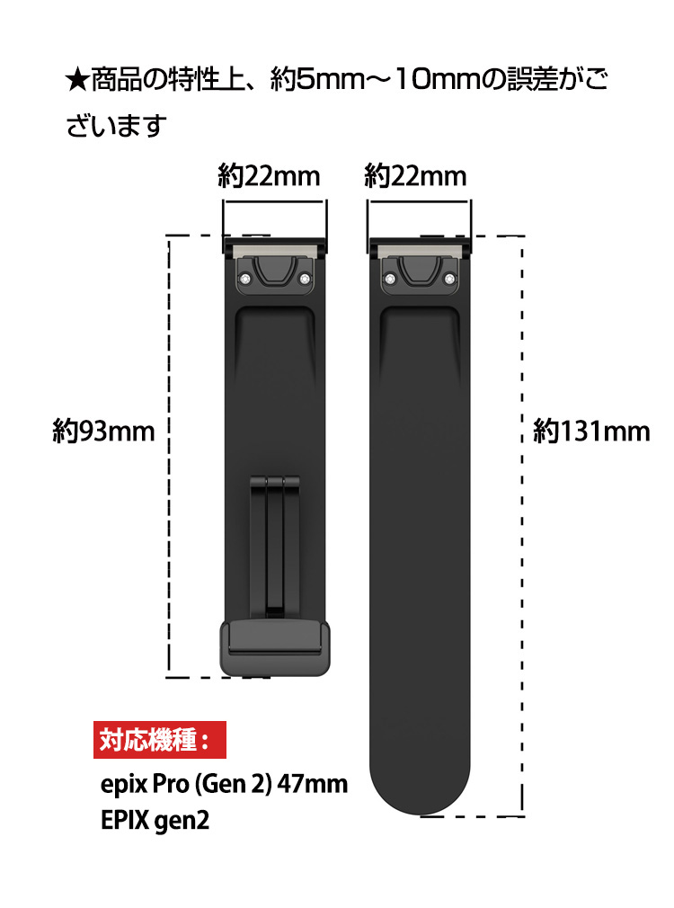 | 対応機種 | Garmin epix Pro (Gen 2) 42mm Garmin epix Pro (Gen 2) 47mm Garmin epix Pro (Gen 2) 51mm Garmin EPIX gen2 | |||||