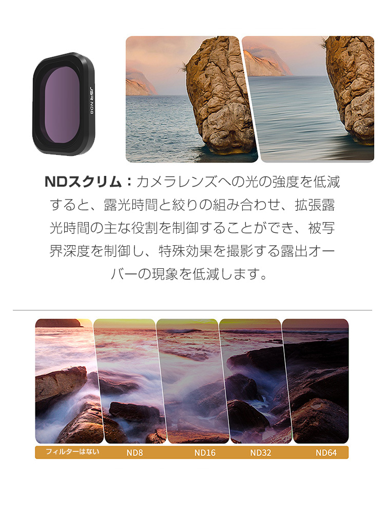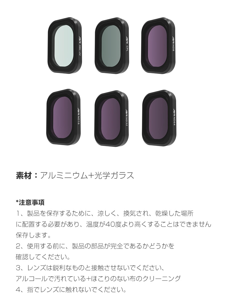 | 商品名 | DJI Osmo Pocket 3用 6個 フィルターキット CPLフィルター+ND8 16 32 64 MCUV 減光フィルター HD光学ガラス 多層コーティング アルミ合金フレーム DJI用アクセサリー 簡単設置 人気 実用 便利グッズ 撮影 POV撮影必要 | |||||