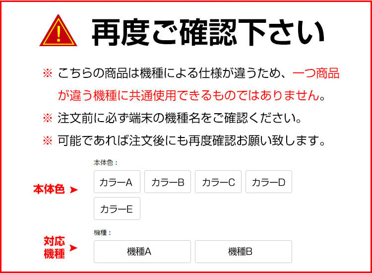 | 注意 | ※対応機種により細部デザインが異なります。 ※端末本体(スマホ、タブレットPC、ノートPC、書籍、マウス、充電器、キーボードなど)は含まれておりません。 ※画像はイメージであり、商品の仕様は予告なく変更される場合がありますので予めご了承ください。 ※掲載の商品画像と実際の色は室内、室外での撮影、モニターの表示により若干異なる場合がありますので、ご了承くださいませ。 ※画像は一例となります。購入前に必ずお手持ちの機種をご確認ください。 ※取付は自己責任でお願いします。 | |||||