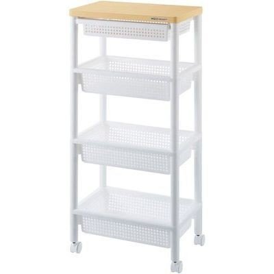 不動技研 ウッドテーブルワゴン キャスター付き 引き出しバスケット 3段棚付き ホワイト WTW-4HS 4962191492414