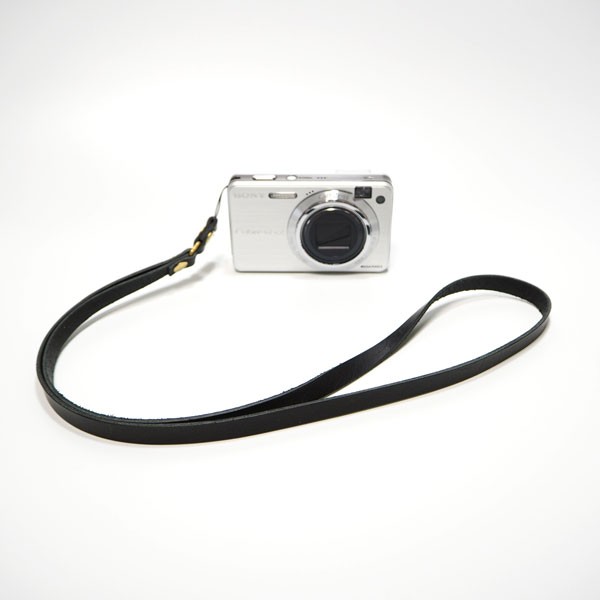 ネックストラップ スマホ コンパクトデジカメ用 ブラック 革 お手軽なプレゼントにも