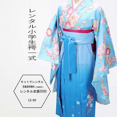 ■水色の色のレンタル袴一です。 身長137cmから145cmの方。上の着物は肩縫い上げ鮪致します。 *商品の色については画面を表示するモニターによって実際と多少異なる場合がございます。ご了承くださいませ。