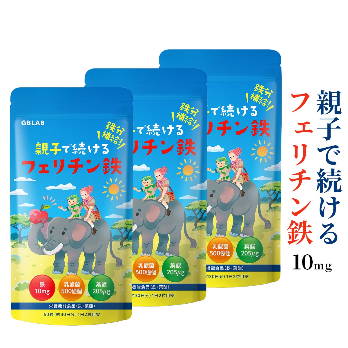 フェリチン鉄 10mg 乳酸菌 500億個 葉酸 205μg ビタミン 亜鉛 貯蔵鉄 栄養機能食品 親子で続ける フェリチン鉄 サプリ 子供も飲める 30日分 60粒 爆買