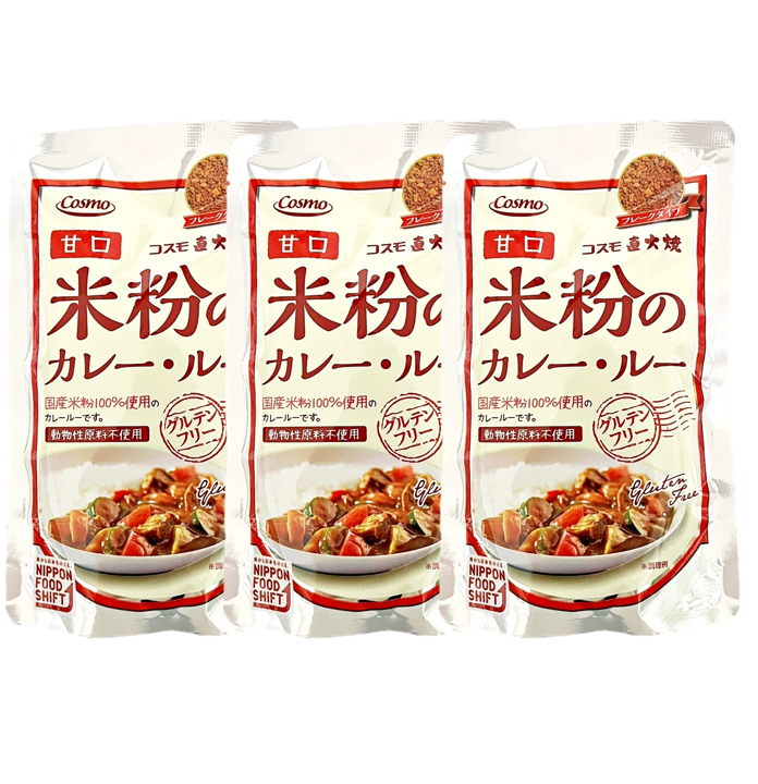 コスモ 直火焼 米粉 カレー ルー ルウ 甘口 110g × 3袋 グルテンフリー フレークタイプ スパイス 国産米粉 お試し