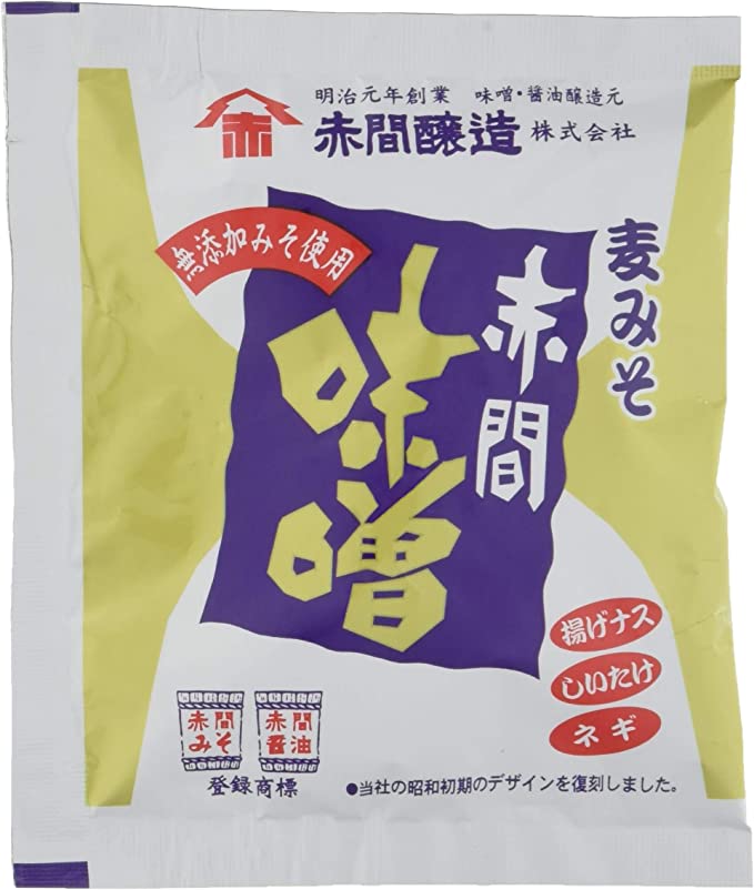 原材料 ?麦味噌、かつおだし、揚げナス、ねぎ、しいたけ