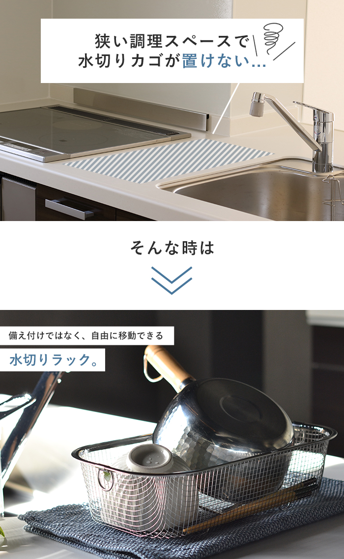 調理台を広く使うための水切りかご