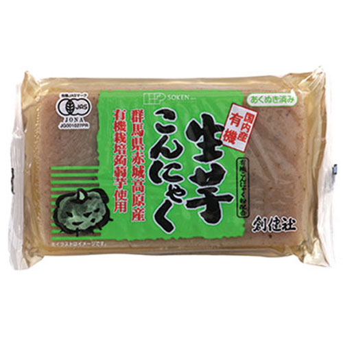 ●群馬県赤城高原の有機栽培蒟蒻芋を使用し、有機認証の製造工場(登録認定機関:共にJONA)で製造した、有機生芋こんにゃくです。