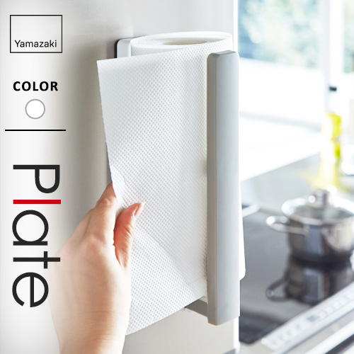 山崎実業 ストッパー付マグネットキッチンペーパーホルダー プレート Plate ホワイト 3420