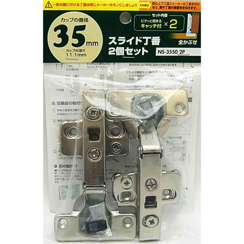 和気産業 WAKI スライド丁番 キャッチ付 35mm 全かぶせ 2個入 NS-3550 2P