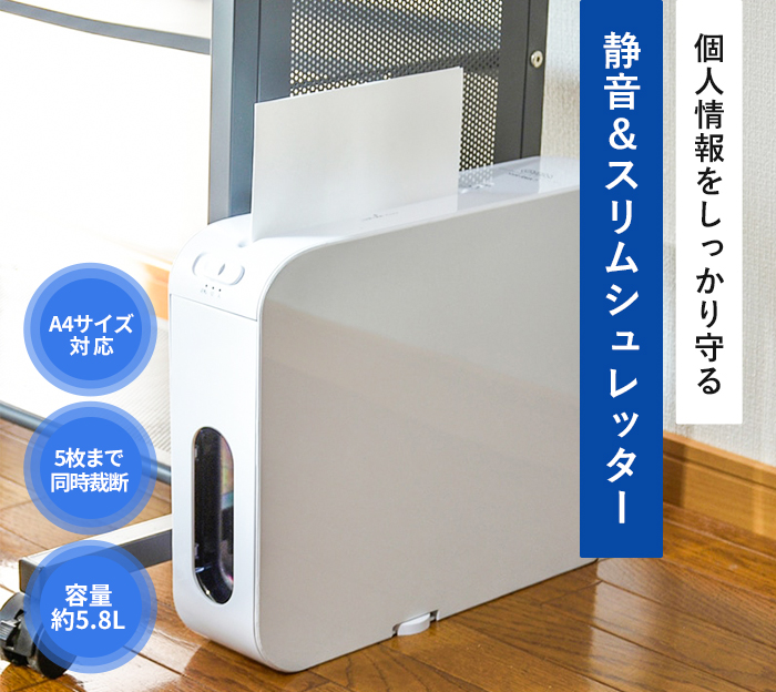 個人情報をしっかり守る、静音&スリム設計のマイクロカットシュレッダー。