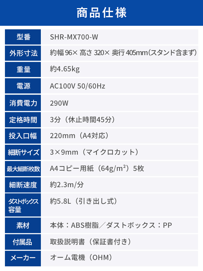 「オーム電機 スリムマイクロカットシュレッダー SHR-MX700-W」は、