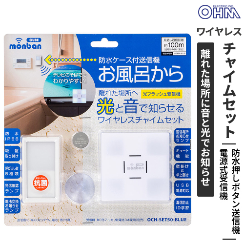 ■ ワイヤレスチャイム、押しボタン送信機(防水タイプ)と電池式受信機のセット
