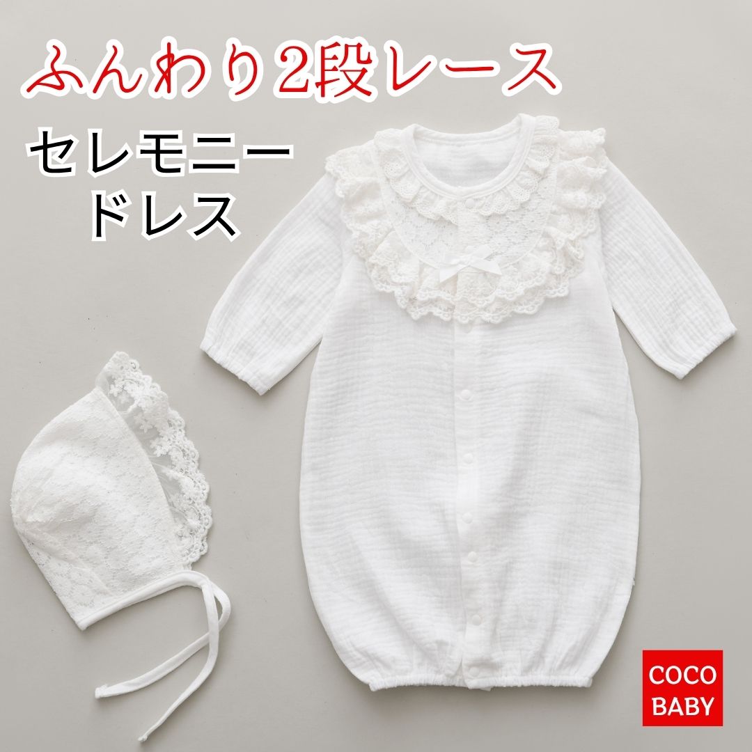 商品名:セレモニードレス 女の子 夏 男の子 新生児 お宮参り お食い初め 退院 2重 ガーゼ ツーウェイオール 前開き 100日 60 ベビー服 ロンパース 白 赤ちゃん 双子 長袖 無地 出産祝い 出産準備 100日 七夜 親族のお集まり お出かけ 通院 検診 cocobaby