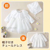 セレモニードレス 新生児 女の子 退院着 お宮参り 結婚式 お食い初め ホワイト 綿 長袖 50 60 70 80 ベビー 1歳 誕生日 ワンピース 帽子