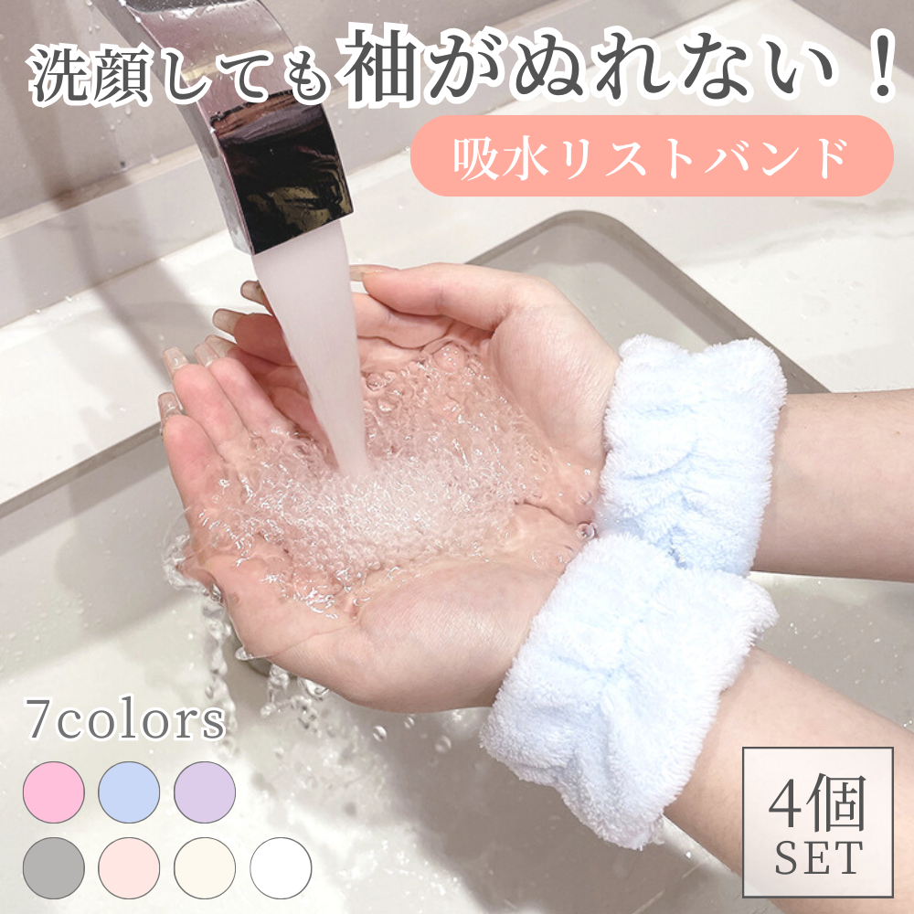 吸水リストバンド 洗顔 4個セット 袖濡れ防止 服濡れ防止 吸水 マイクロファイバー 吸水タオル タオル シュシュ