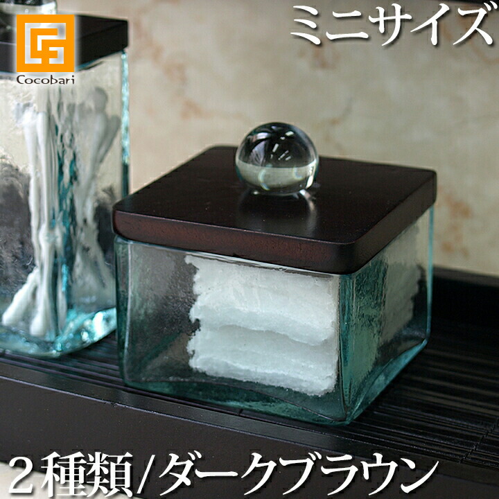 コットンケース(ミニ) フタ(ダークブラウン) (ガラス) アジアン雑貨 バリ おしゃれ リゾート 小さめ 小物入れ 収納 バリ雑貨 バリ風 インテリア