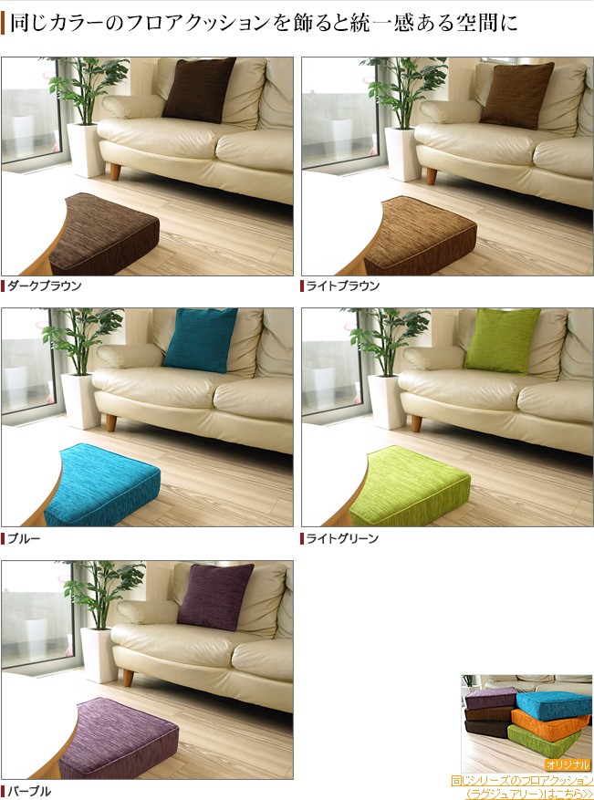 サイズは定番の45cm×45cmで、カラーはアジアンリゾートホテルのような空間にぴったりな11カラーをセレクト。