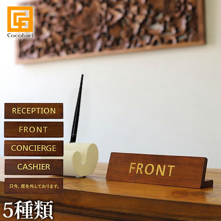 文字の種類は「RECEPTION」「FRONT」「CONCIERGE」「CASHIER」「只今、席を外しております。」の5種類をご用意しました。