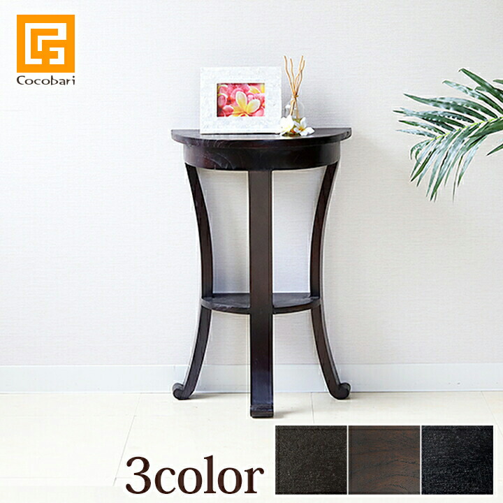 玄関先に棚などがないご家庭では、ちょっとしたテーブルがあると鍵や消毒スプレーなどが置けて便利です。半円なので狭い場所でも圧迫感なく置いていただけます。