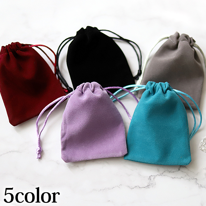 上質なスウェード調の生地を使用した、アクセサリー用のミニ巾着袋です。ご自宅でのガムランボールの保管用としてはもちろん、旅先でネックレスやピアスを外す際にもご使用ください。