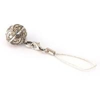 キラキラしたシルバーカラーのストラップです。先端にワンタッチ式のカニカン(金具)が付いているので取り付け・取り外しが簡単です。