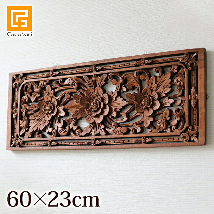 バリに行くとたくさんの種類を見かけますが、その中でも日本のお部屋にも合うように、お花のデザインをセレクトしました☆カラーはブラウンで、彫りの深さ、細かさが遠目からもよくわかります!