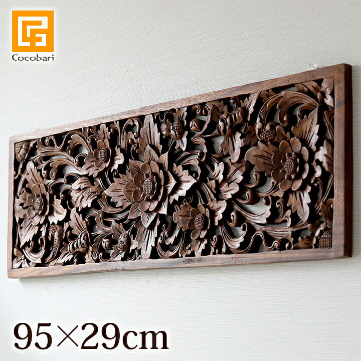 一枚の木の板を彫って作ったパネルです!サイズ29cm×95cmです。とても迫力のあるサイズで、バリではベッドルームなどにも飾られています。