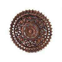一枚の木の板を彫って作ったレリーフです。中心にお花がデザインされています。