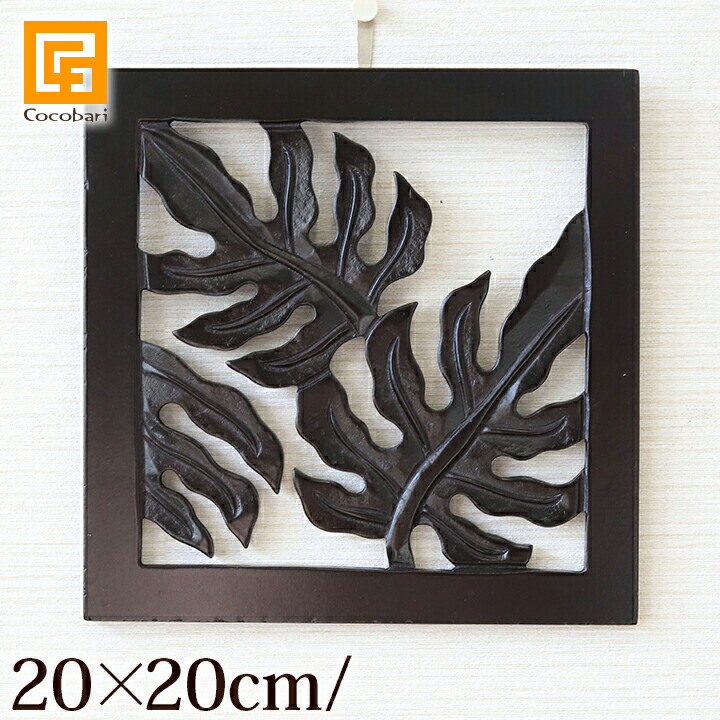 バリの職人さんがひとつひとつ丁寧に作ったアートレリーフです。人気のモンステラのデザインで、正方形の縁がモダンな印象です。