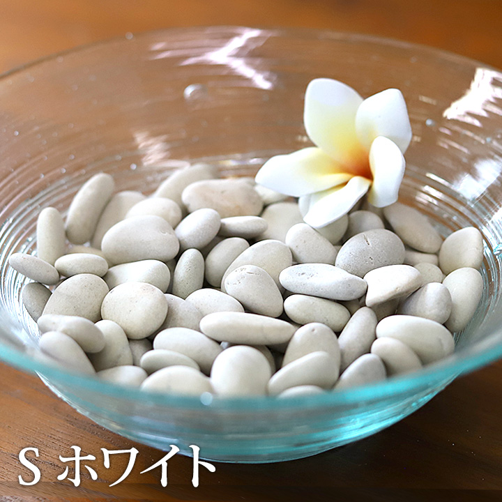 天然石の一つ一つ異なる表情が味わいをプラスし、白の石の持つ風合いが爽やかさも演出。 主役のインテリアを引き立ててくれる名脇役!南国コーディネートにはかかせません。