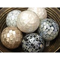 天然のシェルが美しいインテリアボール(球体)です。貝殻をモザイクタイル状にして貼り合わせて作る手間のかかる一品です。