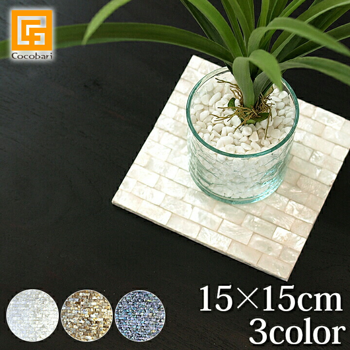 テーブルセンター18cmを中央に、両サイドにテーブルセンター15cm(このページ)を置いたイメージです。シンプルなテーブルが模様入りのテーブルに変身!シェルの上品な輝きで爽やかなビーチリゾートの非日常感が広がります。特にパールホワイトはテーブルをパッと明るくしてくれます。