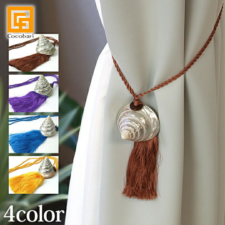 発色のいいフリンジに貝を組み合わせたタッセル。