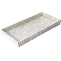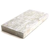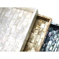 長方形のトレイです。貝殻をモザイクタイル状にして貼り合わせて作る手間のかかる一品です。側面、内側にもシェルが貼られています。