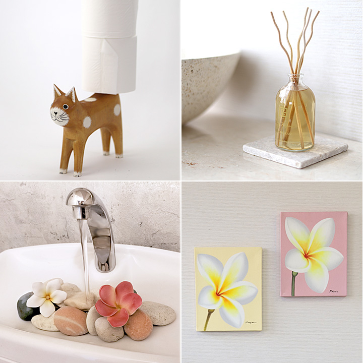トイレタンク用の飾り石セット(排水溝カバー付き)です。南国バリ島の素敵なホテルでも、装飾やインテリアとして使われている自然の石(ホワイト、ブルー、ピンク)に、本物みたいと人気の南国のお花プルメリアの造花のセットで、届いたらすぐに写真のように飾っていただけます。
