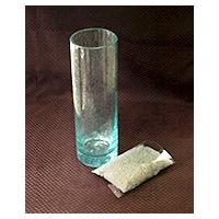 癒しの楽園バリ島の爽やかな淡いブルーのガラス製フラワーベース(花瓶)です。厚みがあって、手作りの温もりを感じる作品です。円柱形のシンプルなデザインで飾るお花を選びません。