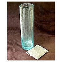 癒しの楽園バリ島の爽やかな淡いブルーのガラス製フラワーベース(花瓶)です。厚みがあって、手作りの温もりを感じる作品です。円柱形のシンプルなデザインで飾るお花を選びません。